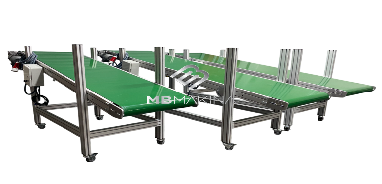 MB Makina, rulolu konveyörler konusunda da geniş bir ürün yelpazesi sunar, alüminyum şase ile hafif ve dayanıklı modeller üretir.  Bu sistemler, depo ve montaj hatlarında sıkça tercih edilir.