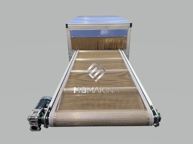 MB Makina Fırın Konveyör: 150-180°C ısı kapasiteli infrared ısıtma sistemi. Isıya dayanıklı konveyör bant ile ürünler ilerlerken homojen ısıl işlem. Endüstriyel tünel fırınlar için yüksek verimli taşıma çözümü